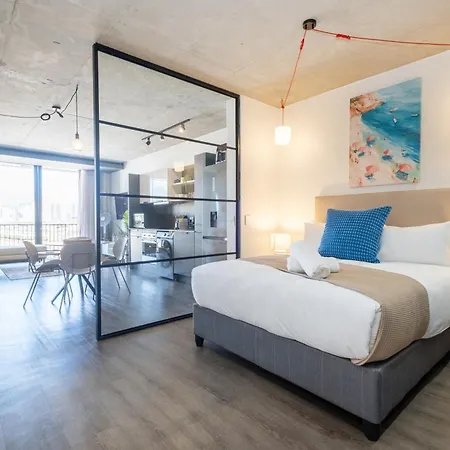 509 Wex - Modern Studio With Parking offers a fully equipped kitchen with all necessary appliances. Also, a swimming pool invites guests to dive in.